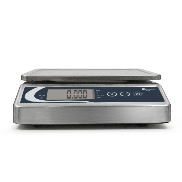 La balanza Baxtran PS está construida íntegramente en acero inoxidable, tanto su carcasa como el plato de pesaje, lo que le confiere durabilidad y facilidad de limpieza.