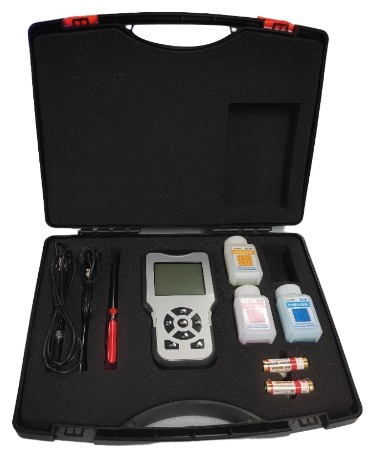 Incluye electrodos de pH y temperatura, soluciones tampón, baterías y manual.